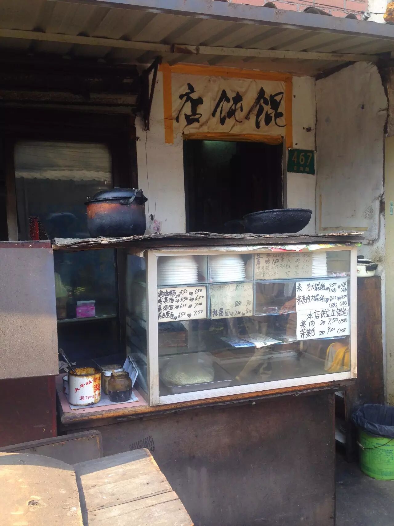 这家门面很有历史,83年时馄饨阿姨家里非常困难因此老公单位里福利分房征配给他夫妻俩这一小间在路边的平房,一开始也只是因为路边太吵所以借给了隔壁人家做生意。后来阿姨工作的浦东高桥某厂倒闭,只好下岗——不过趁此机会阿姨收回了这间平房,于99年开始开出这家店。