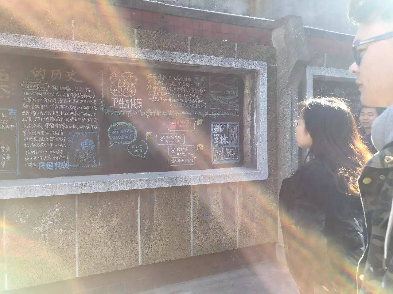 参加51人活动的朋友们阅读黑板报